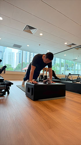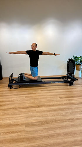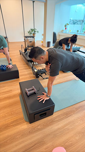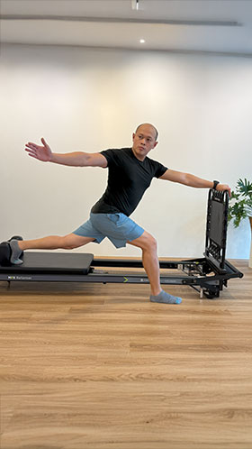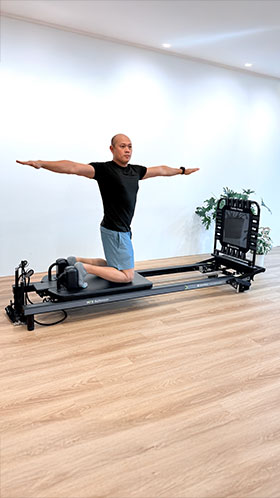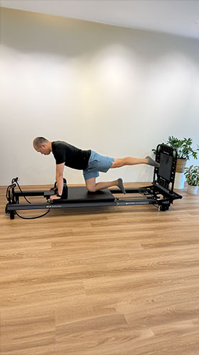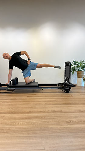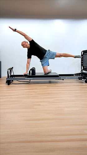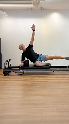 Reformer Bounce with Patrick is an energizing fusion of Pilates and cardio intervals on the trampoline (Cardio-Tramp), designed to boost your heart rate, improve endurance, and tone your body.