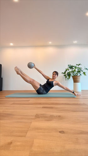 With the addition of weighted balls and dumbbells for extra challenge and support, this session is perfect for all levels—whether you're looking to power up your morning or recharge your day.